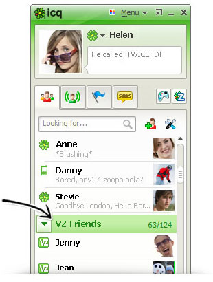 Verbinde Dein ICQ mit Deinem VZ-Konto und chatte direkt per ICQ mit Deinen studiVZ Freunden. All Deine studiVZ Freunde werden in der Kontaktliste als "VZ Freunde" dargestellt.