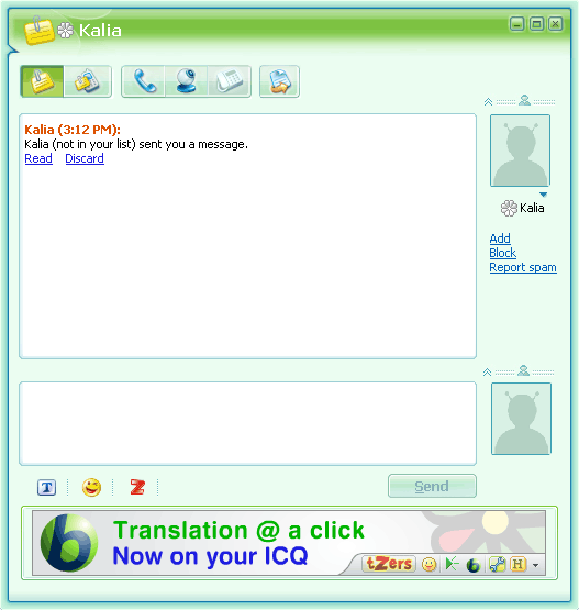 Note: This option is only available in the message window when the message is from a user that is not on your contact list.