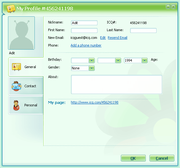 change my details (in ICQ 6.5)