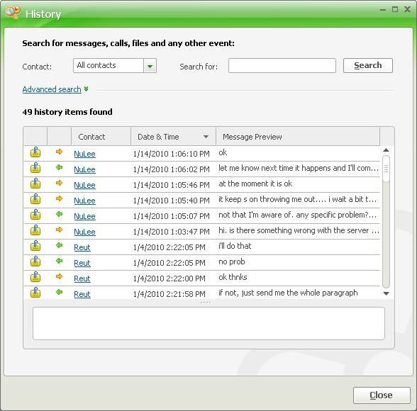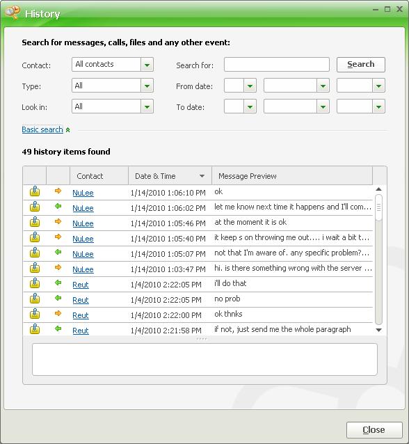 In the History window you can choose to view all history items or select a contact from the Contact dropdown list to view items for a specific friend.