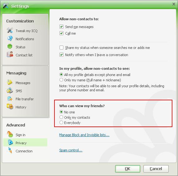For existing users, that is, those that have upgraded from ICQ 6.5 to ICQ 7, the default privacy option is