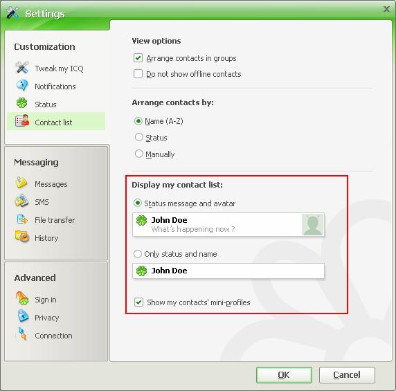You can choose to display just your contacts' status and name, or you can include their status message and avatar as well.