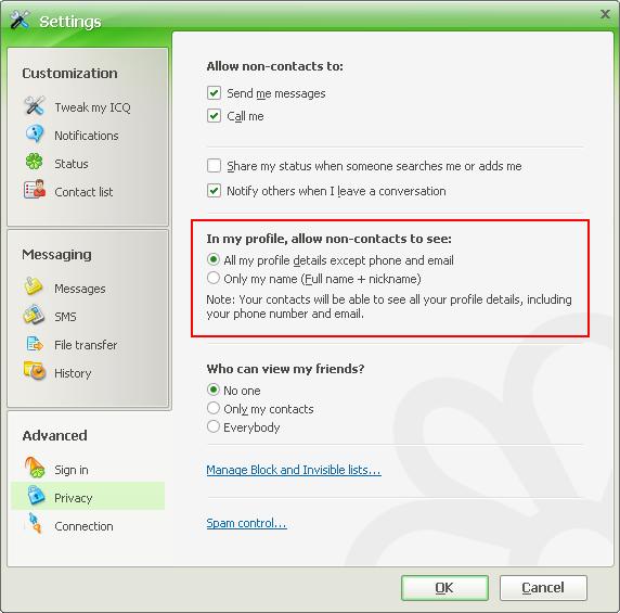 - If someone who is not your contact searches for your nickname, they will find your account, but they will only see your first & last name, nickname and ICQ number.