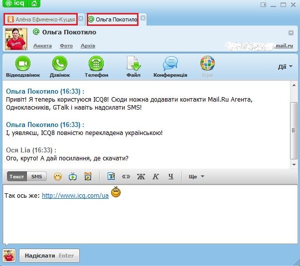 Також, використовуючи ICQ, ви можете спілкуватися ще й із користувачами Mail.Ru Агента, Однокласників, ВКонтакті, Facebook, Gtalk, Яндекс, QIP і Jabber.