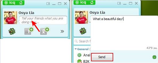 Enter your message, which must be no longer than 500 symbols, and indicate which connected networks you want to publish the status update to. Click "Send".