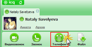 Вы также можете позвонить пользователю из окна диалога с пользователем, для этого нажмите «Телефон».