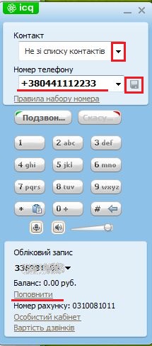 Зверніть увагу на стан вашого рахунку, він відображається під іменем облікового запису в рядку «Баланс». Для здійснення дзвінка рахунок повинен бути більше 0. Якщо ви хочете покласти гроші на рахунок, натисніть «Поповнити».