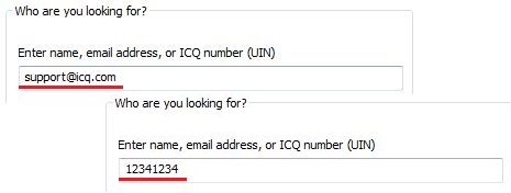 If you want to add a specific user whose email address or ICQ number you know, enter his or her information in the "Email or ICQ number (UIN)" field and click "Search".