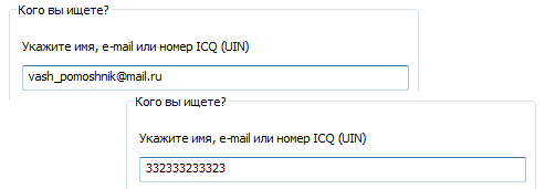 Если вы хотите добавить конкретного пользователя, электронный адрес или ICQ-номер которого вам известен, введите его данные в поле «E-mail или ICQ-номер(UIN)» и нажмите «Поиск».