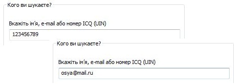 Якщо ви хочете додати конкретного користувача, електронну адресу або ICQ-номер котрого ви знаєте, введіть його дані в поле «E-mail або ICQ-номер(UIN)» і натисніть «Пошук».