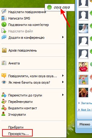 Ви також можете налаштувати прозорість плаваючих контактів. Для цього клікніть на будь-якому плаваючому контакті правою кнопкою миші й виберіть «Прозорість...»