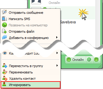Если вы не хотите больше общаться с каким-либо пользователем, получать от него сообщения, видеть его в своем списке контактов, а также хотите быть всегда невидимым для данного пользователя, то вам необходимо внести его в список «Игнорируемых».