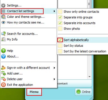 To customize how your contact list is displayed, click "Menu" — "Contact list settings".
