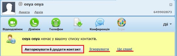 Щоб користувач зміг додати вас до списку своїх контактів, ви повинні його авторизувати, для цього натисніть «Авторизувати й додати контакт».