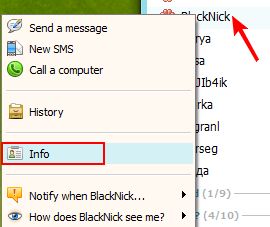To view a contact's profile (date of birth, phone numbers, etc.), click "Info".