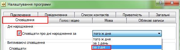Ви також можете вказати, за який час до Дня народження надсилати вам сповіщення, для цього у випадному списку виберіть потрібний параметр.