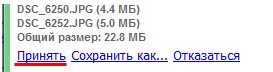 Если вы хотите принять файлы, кликните по ссылке «Принять», если не хотите, то по ссылке «Отказаться», а если вы хотите указать путь для сохранения передаваемых файлов, то кликните по ссылке «Сохранить как…».