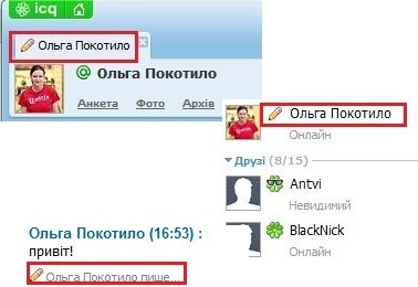 Сповіщати співрозмовника, коли я вводжу повідомлення — якщо ця опція увімкнена, то щойно ви почнете писати повідомлення, ваш співрозмовник дізнається про це — у вікні діалогу, а також у списку контактів з'явиться відповідне сповіщення: