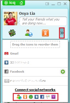 You can also use ICQ to chat with users of Mail.Ru Agent, Odnoklassniki, VKontakte, Facebook, Gtalk, Yandex, QIP, and Jabber.