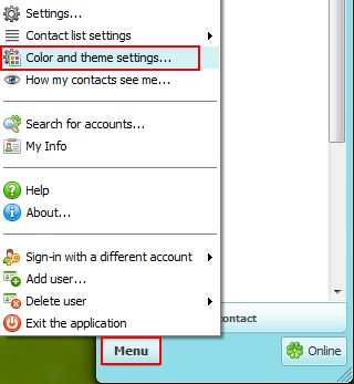 You can specify your favorite color or theme to be used as the color scheme for all of ICQ 8's windows.