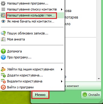 Щоб обрати свій колір і тему, перейдіть «Меню» — «Налаштування кольорів і тем...».