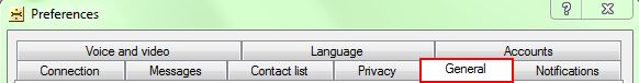 To configure "Away" mode, enable/disable ICQ's sound, configure auto-start, or change the path into which transferred files are saved, go to "Menu" — "Settings" and select the "General" tab.